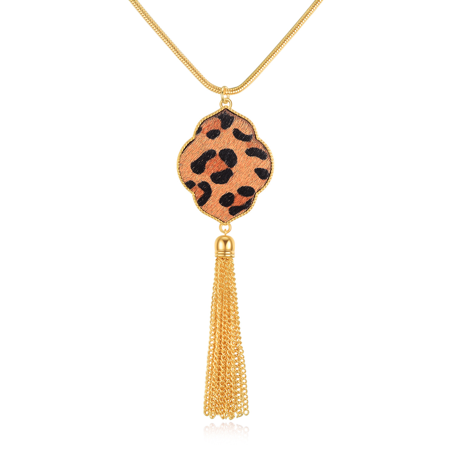 Accessories Horsehair Leopard Print Flower Tassel Necklace