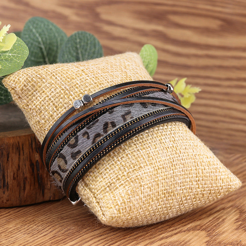 Alloy Magnet Horsehair Bracelet Leopard Print Lady Bracelet
