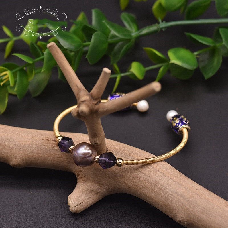 Baroque Purple Pearl Crystal Stretch Bracelet