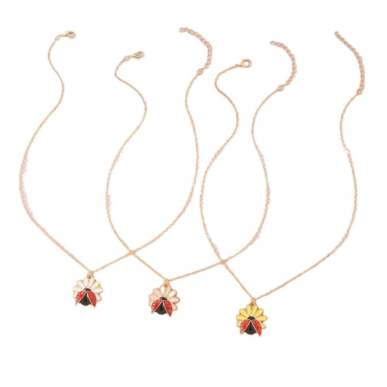 Children's Jewelry Pastoral Style Flower Ladybug Necklace Cute Cartoon Seven-spot Ladybug Pendant