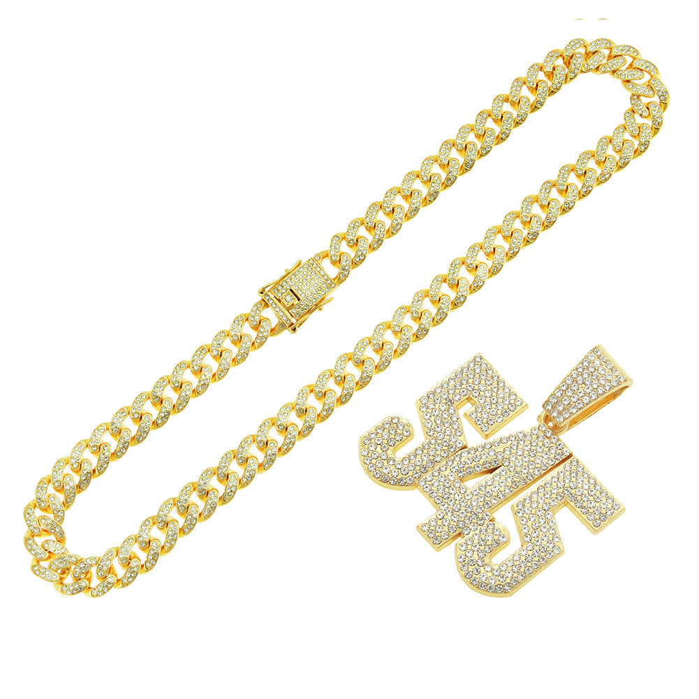 Hip-hop Full Diamond Three-dimensional Number Pendant Necklace For Men