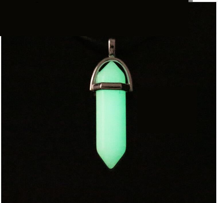 Leather Rope Luminous Pendantfashion Luminous Stone Fluorescent Stone Hexagonal Natural Crystal Pendant Necklace