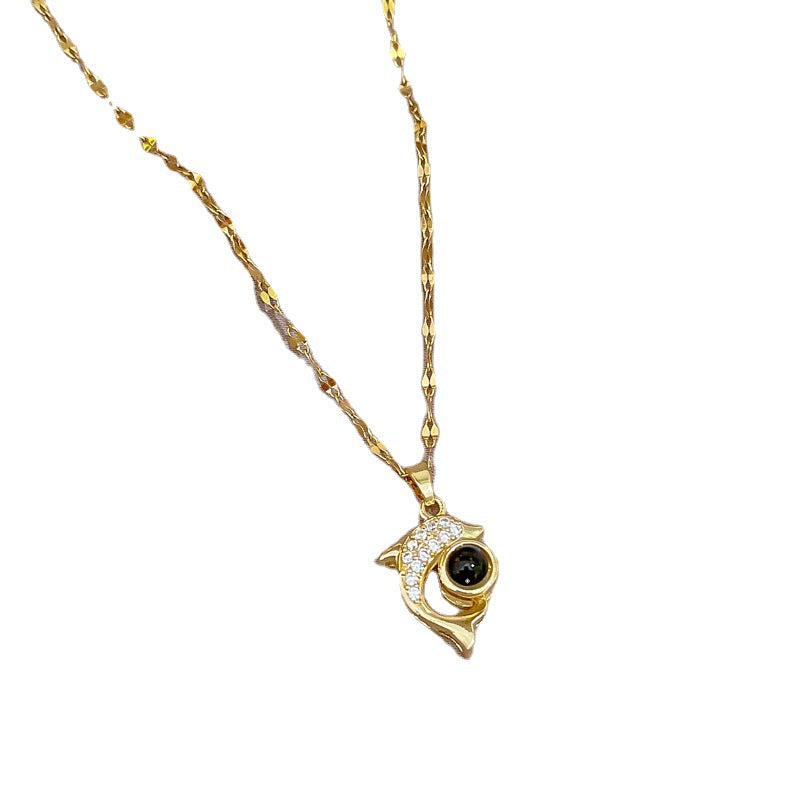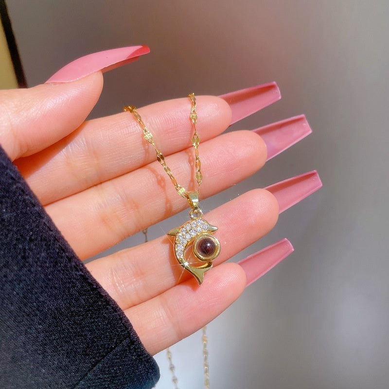 Light Luxury Dolphin Projection Stone Necklace