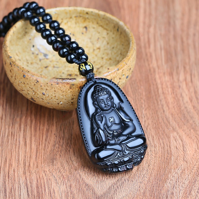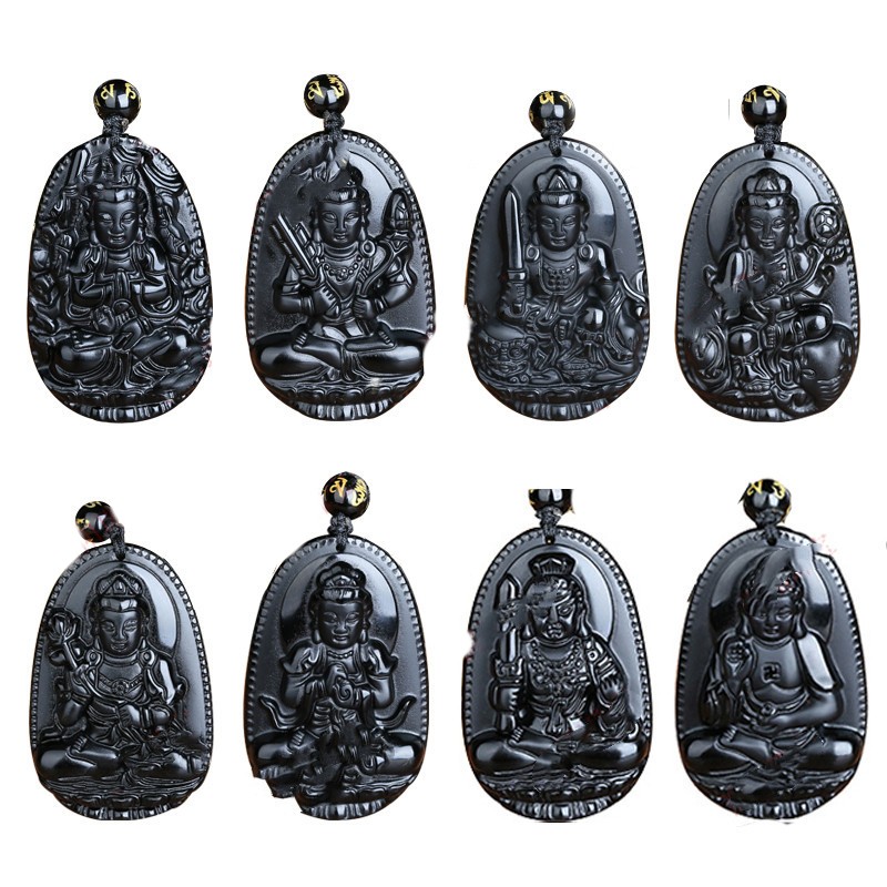 Natural Crystal Obsidian Raw Stone Polished Carved Pendant Necklace Ornaments