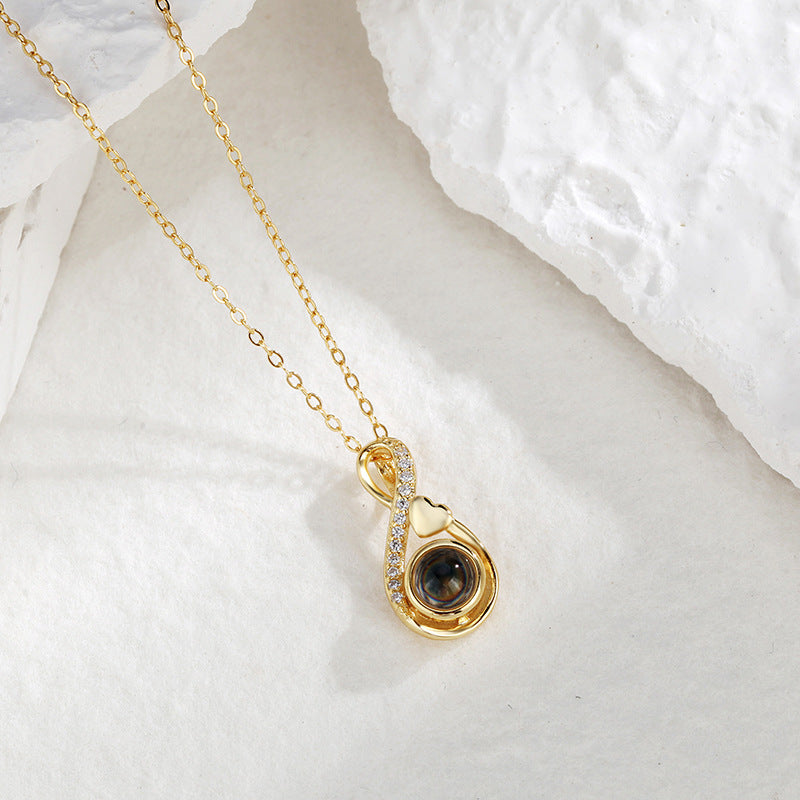 Sterling Silver 8-ring Love 100 Languages Projection Necklace